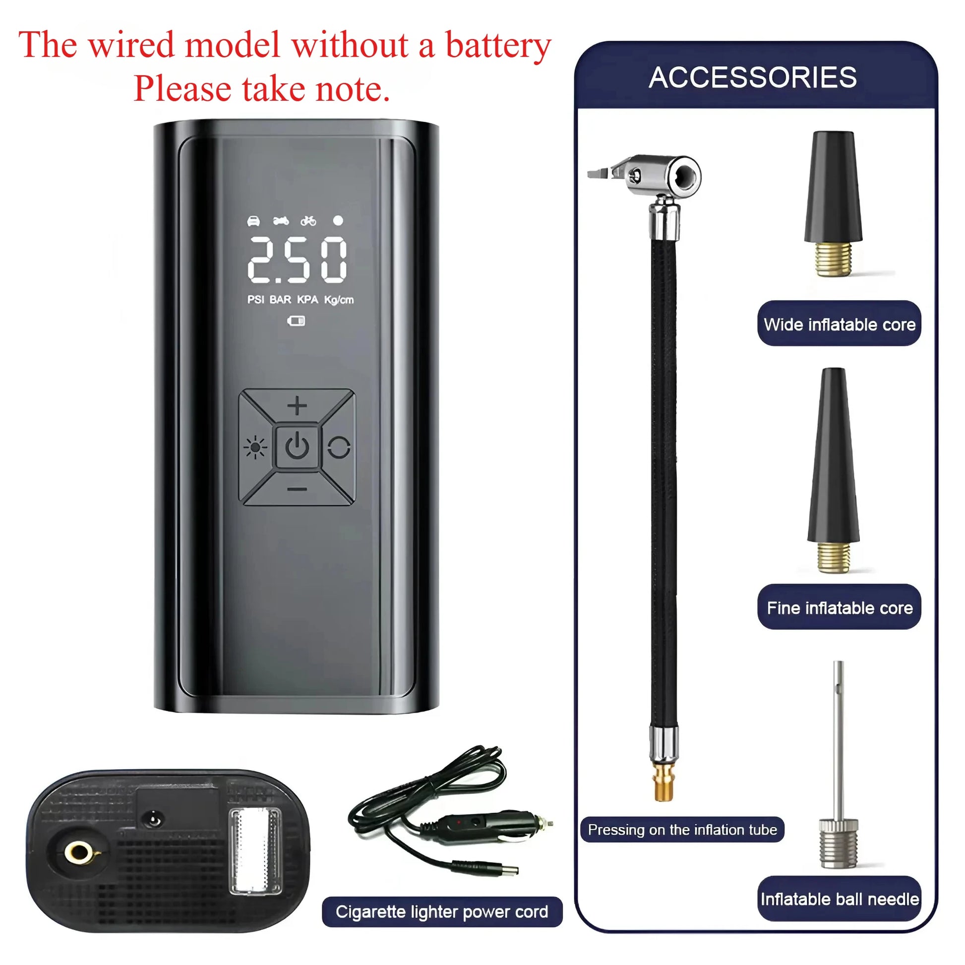 120W Handheld Air Compressor Wireless/Wired Without any battery Inflatable Pump Portable Air Pump Tire Inflator Digital for Car