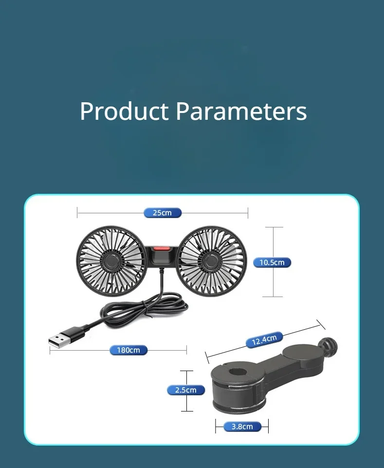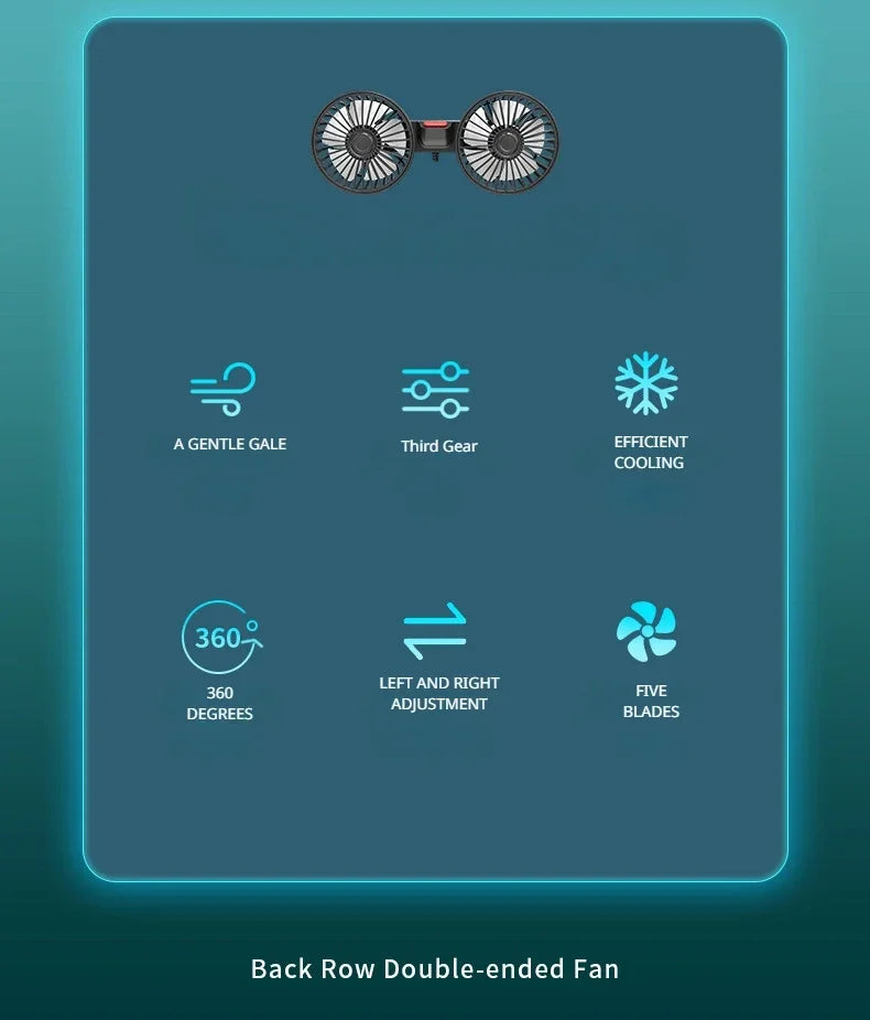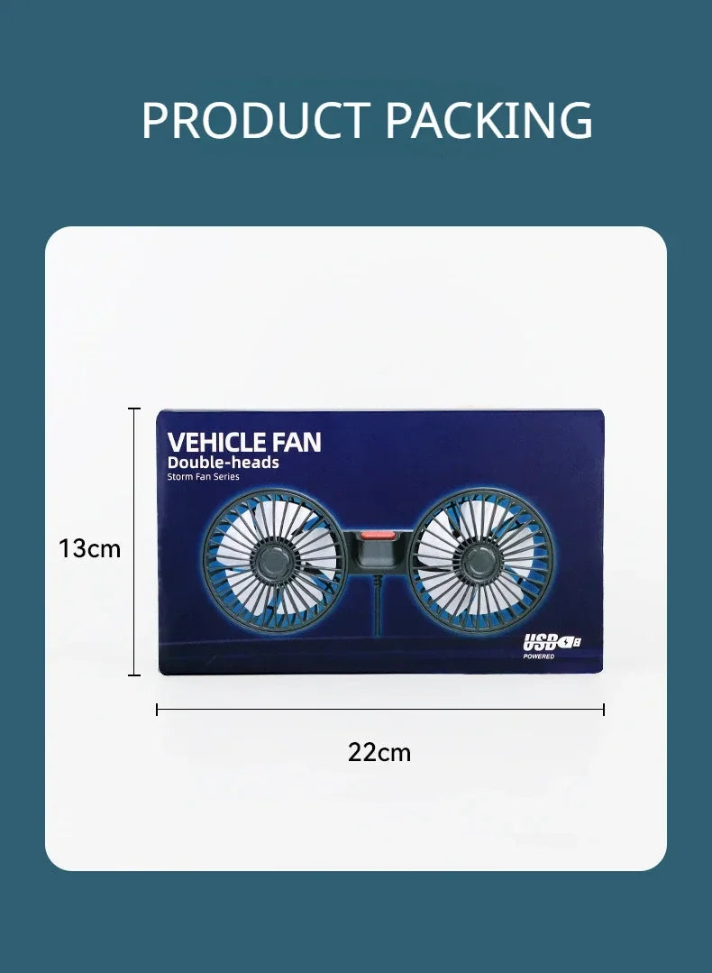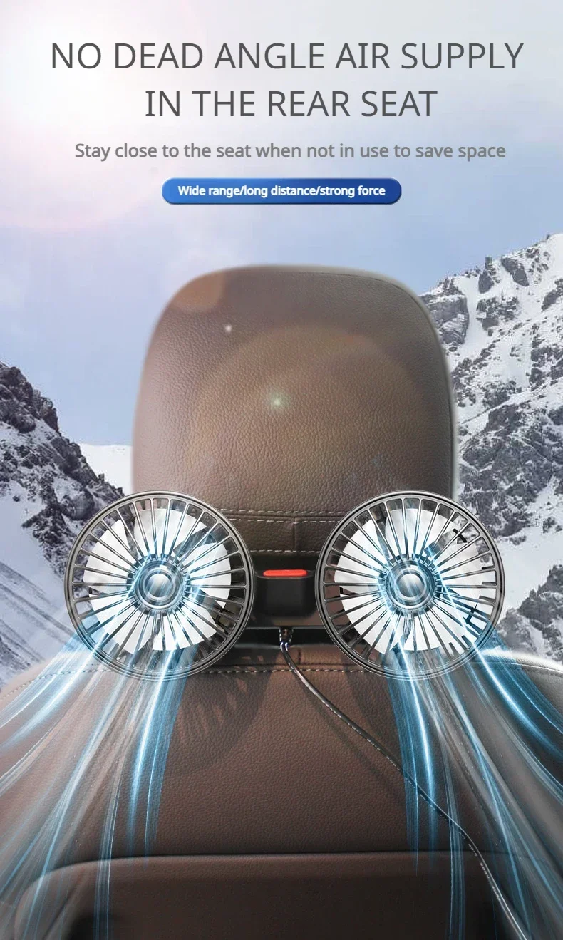 12V 24V Car Fan USB Charge Dual Head Fan 360 Degree Rotation 3-speed Car Seat Back Cooling Fan for Summer Car Accessories