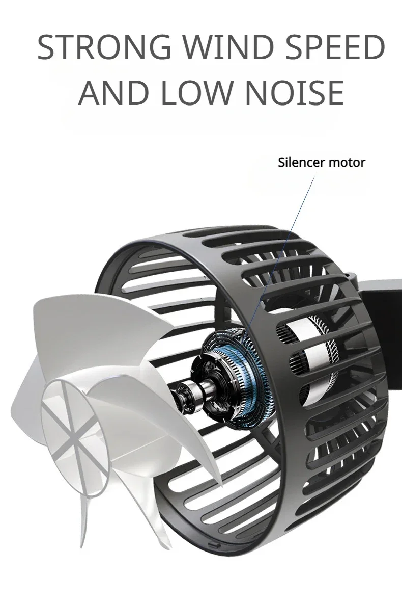 2.Five-page turbofan Three-speed wind adjustment Five-page fan blade + Diversion outer cover Optimize fan blade arc according to aerodynamics.
