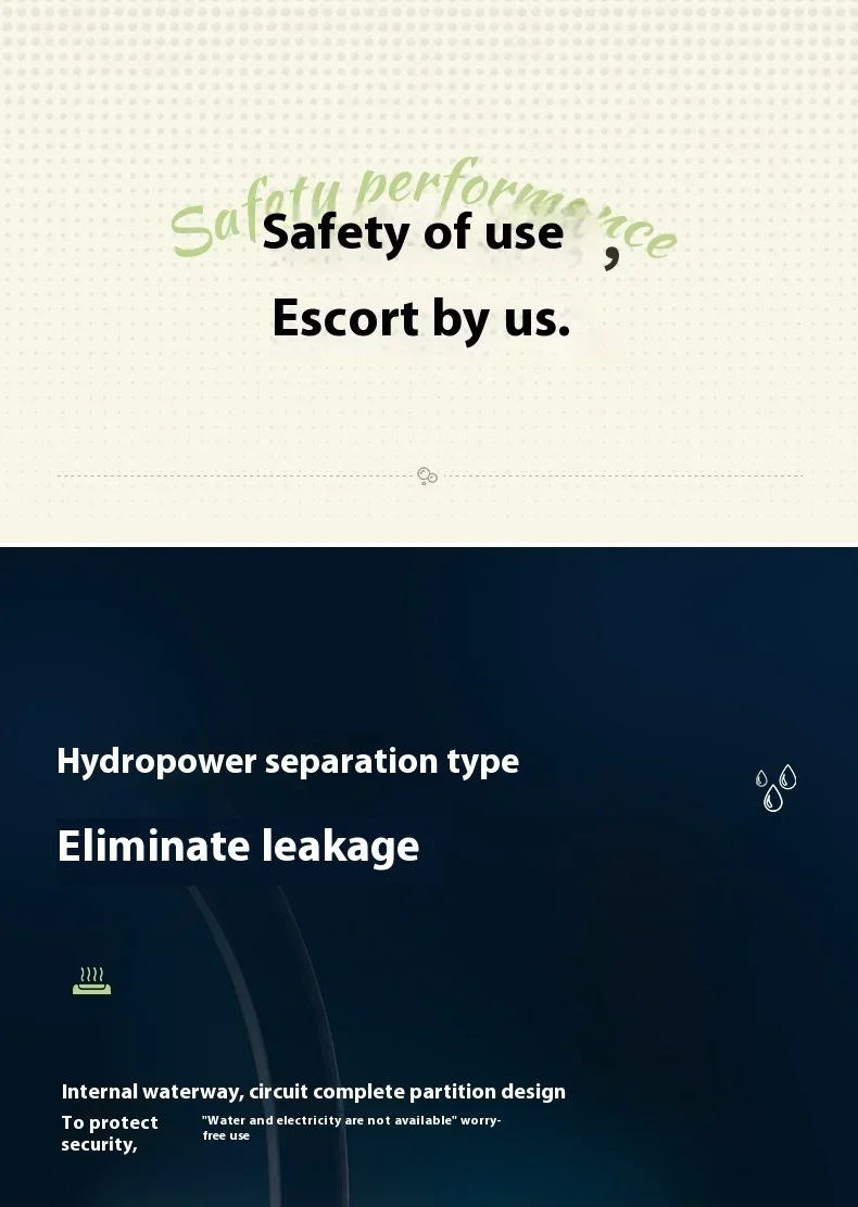 Safety Protection: Built-in leakage prevention, overheat protection, and automatic shutoff.