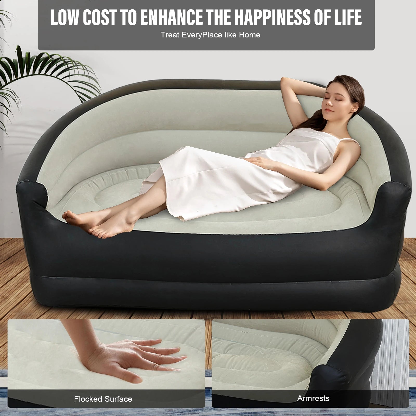 1. Luxurious Inflatable Armchair Sofa: Experience comfort with our luxury PVC comfortable lounger that comfortably seats 2-3 people. Featuring a backrest and armrests, it's for relaxation whether you're in the living room, bedroom, garden, or for outdoor settings.
