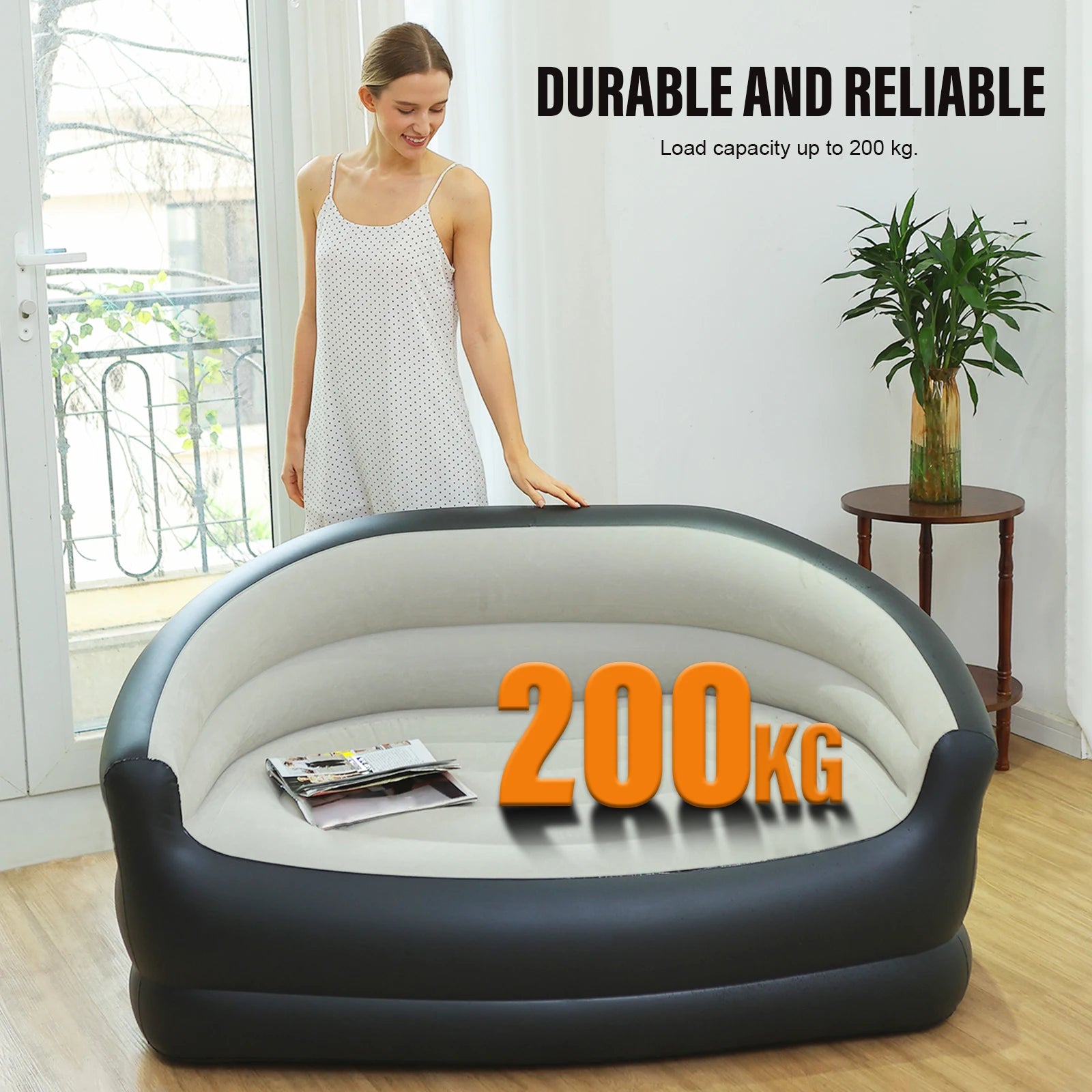 4. Sturdy & Reliable: Crafted from high-strength, premium PVC material, this blow up couch supports up to 200kg of weight, providing you with peace of mind in its reliability and strength.