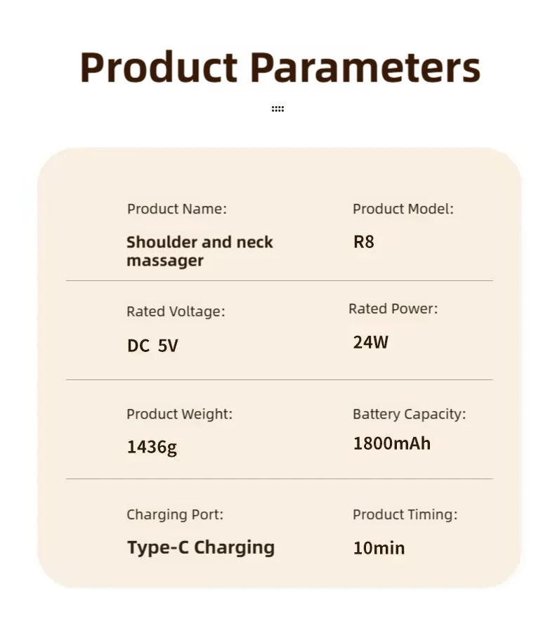 6. Durable. DC brushless motor, low noise, strong power, with over-massage and overheat protection. Battery capacity: 1800mAh, charging time: 3 hours, usage time: 10 minutes, can be used 7-8 times.